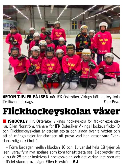 Redan tvć veckor efter att denna bild togs och texten skrevs har vi ökat frćn 25 registrerade tjejer till 30 i hockeyskolan för flickor! Visa denna fina artikeln för era kompisar sć blir dem säkert sugna att komma och träna med detta härliga gäng!