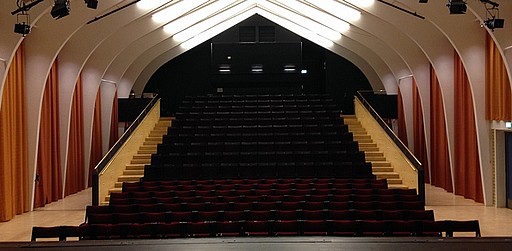 Vid konferens kan lokalen möbleras i biosittning med bord.